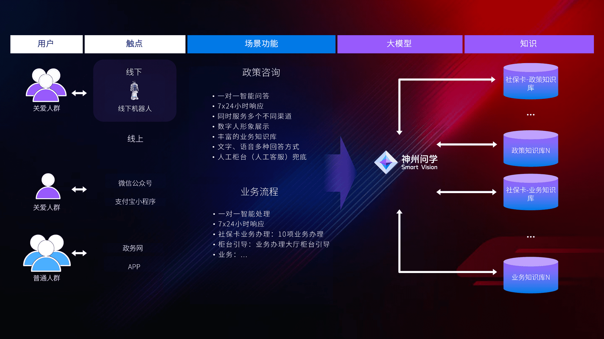 • 线上线下全覆盖:线上提供微信公众号、、支付宝小程序、、、政务网、、、、app多种渠道,,,与线下机器人形成完整服务体系。。。
